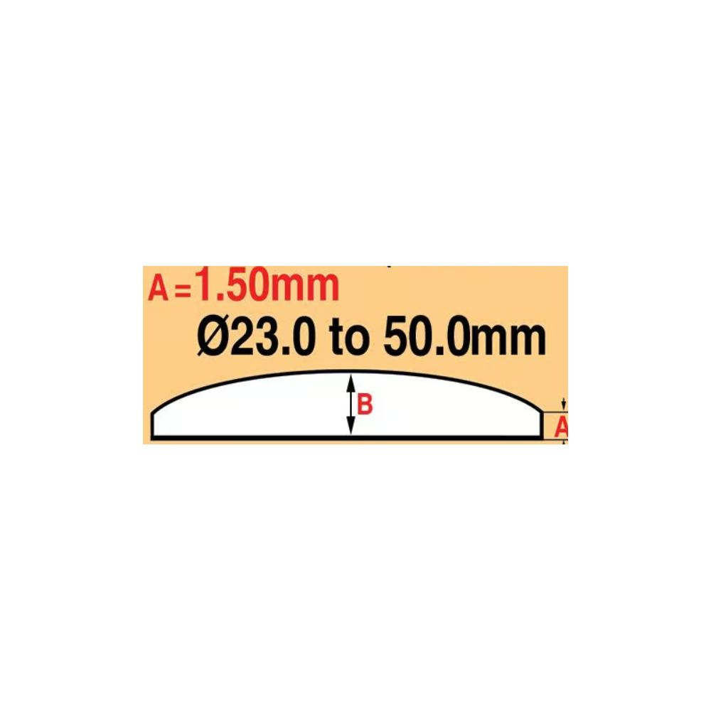 A = 1,50 mm Tloušťka hrany – klenuté s plochou spodní plochou  – minerální sklo