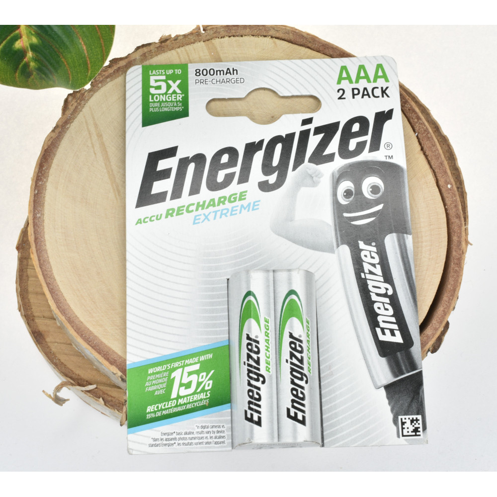 Baterie ENERGIZER Extreme nabíjecí - AAA/HR3 mikrotužková,kapacita 800mAh,napětí 1,2V,přednabité,2ks balení,blistr,cena za dva kusy.